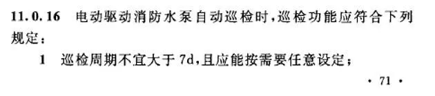 在第12.2.7.3章節中,提出消防水泵控制柜面板應設置巡檢狀況顯示,由此可見,消防水泵控制柜需要進行巡檢,實時反饋巡檢狀況。