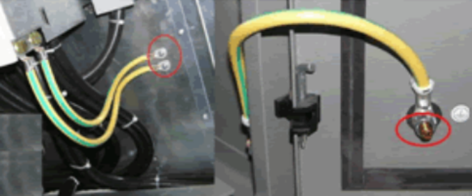 保護接地連續性利用有效接線來保證,如圖1-6所示。柜內任意兩個金屬部件通過螺釘連接時如有絕緣層均應采用相應規格的接地墊圈,而且要注意將墊圈齒面接觸零部件表面,或者破壞絕緣層。門上的接地處要加“抓墊”或“菊花墊“,防止因為油漆的問題而接觸不好,而且連接線要盡量短。